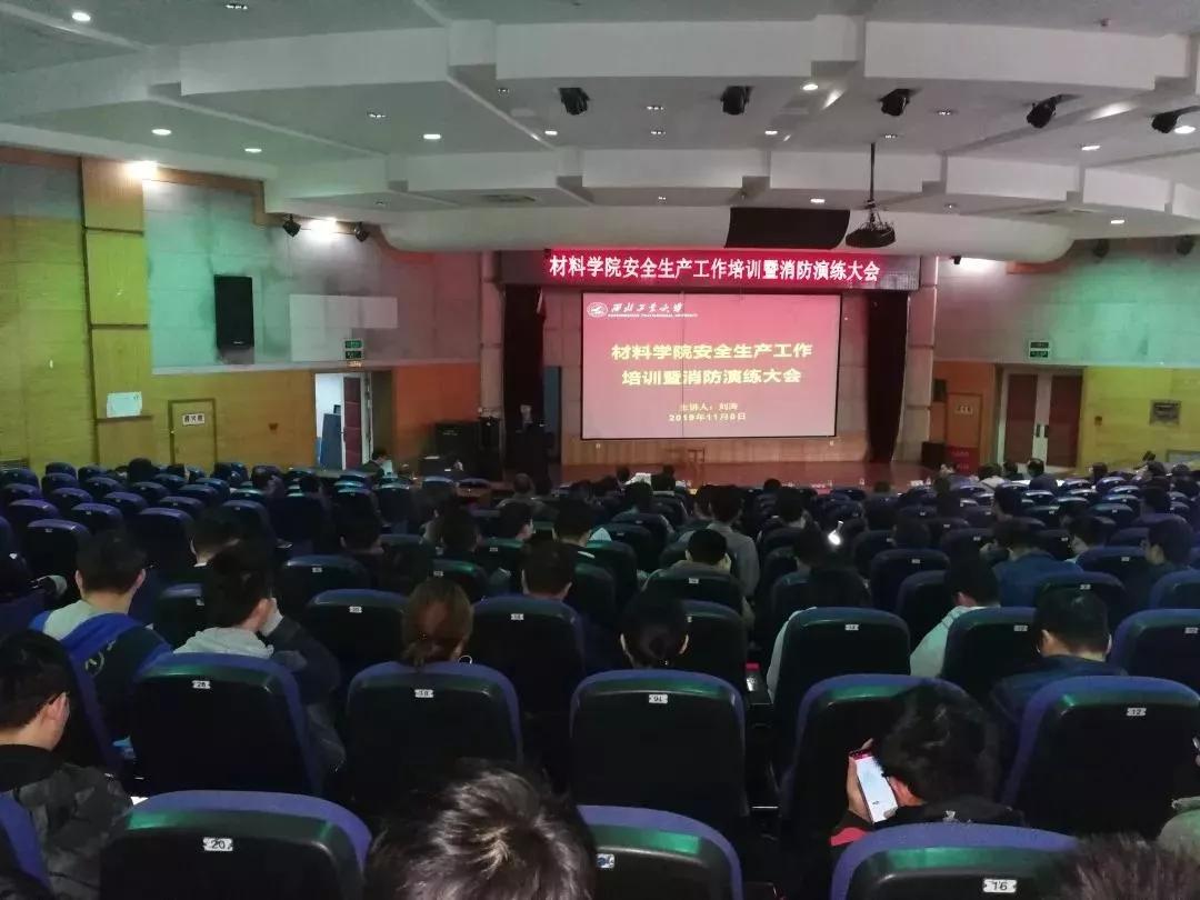 為了加強實驗室安全生產工作管理,提高學院師生的消防安全意識和應急技能,11月8日下午14:30,西北工業(yè)大學材料學院在航空樓D座環(huán)形報告廳舉辦實驗室安全生產工作培訓暨消防演練大會。培訓會請到了陜西科儀科技有限公司安全產品產品經理劉濤做精彩報告。保衛(wèi)(公安)處消防科許磊、胡濤、邵遠征、材料學院各實驗室安全負責人、全體一年級碩士和博士研究生以及近一年來新入職教職工參加大會。材料學院副院長林鑫主持會議。